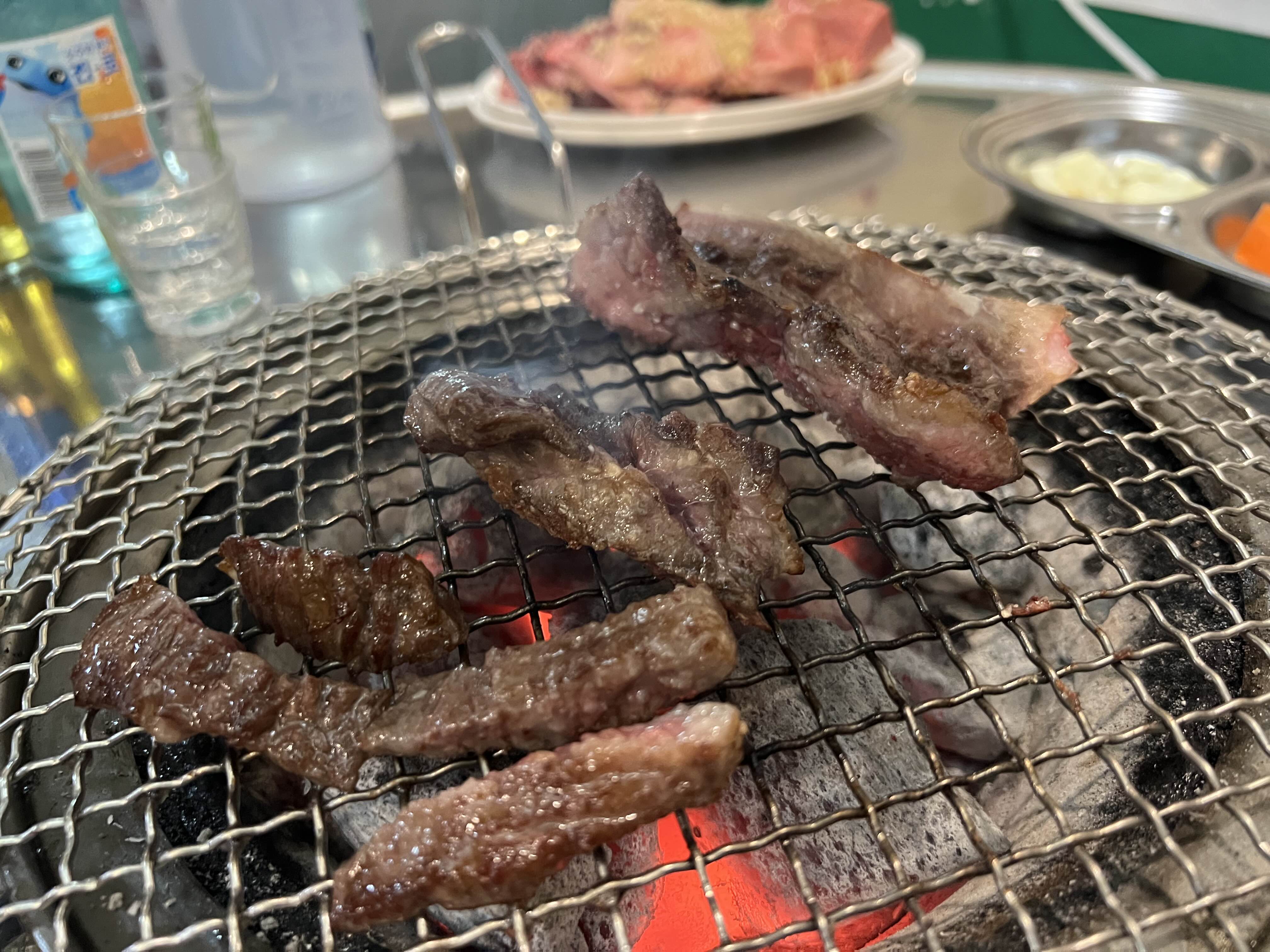 양념갈비는 좀 더 널찍한 판으로 교체해주셨고 신나게 뒤집다 보면 익어서 먹으면 된다.